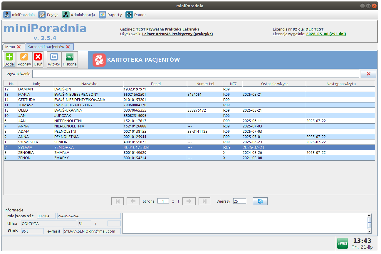 Poniżej przedstawiamy podstawowe możliwości oprogramowania miniPoradnia.