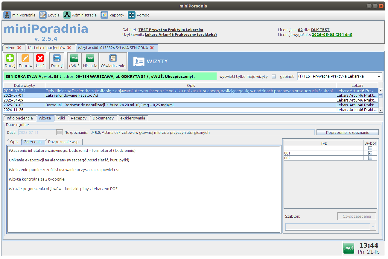 Wprowadzanie rozpoznań, opisów i zaleceń