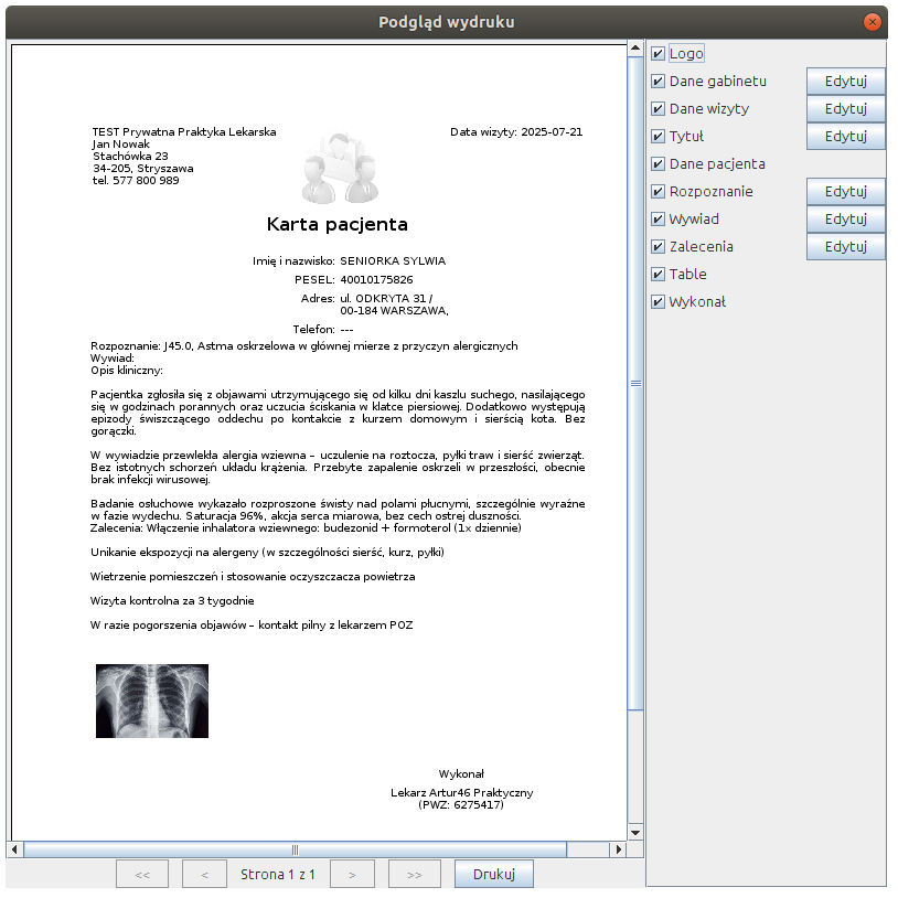 Drukowanie przejrzystego raportu z wizyty
