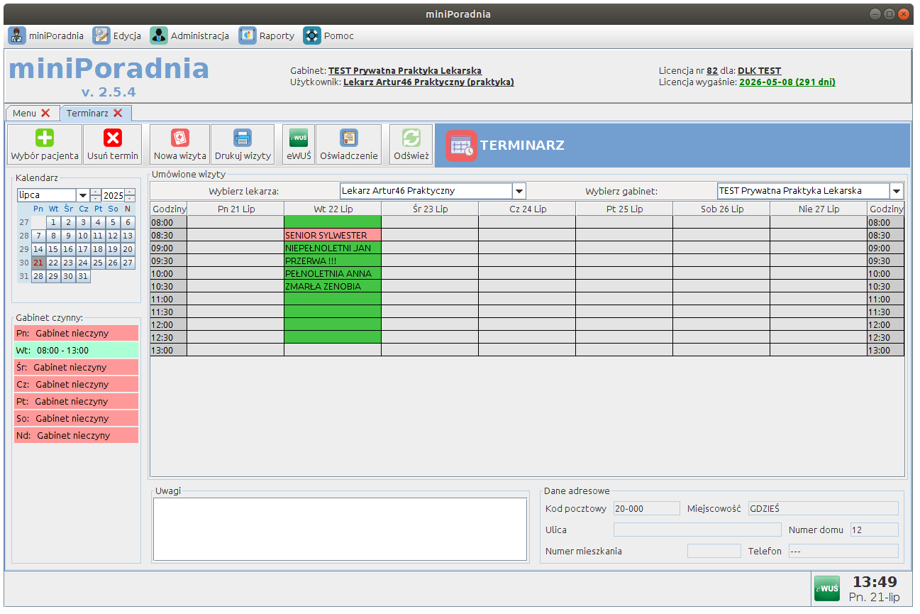 Nieograniczona liczba gabinetów