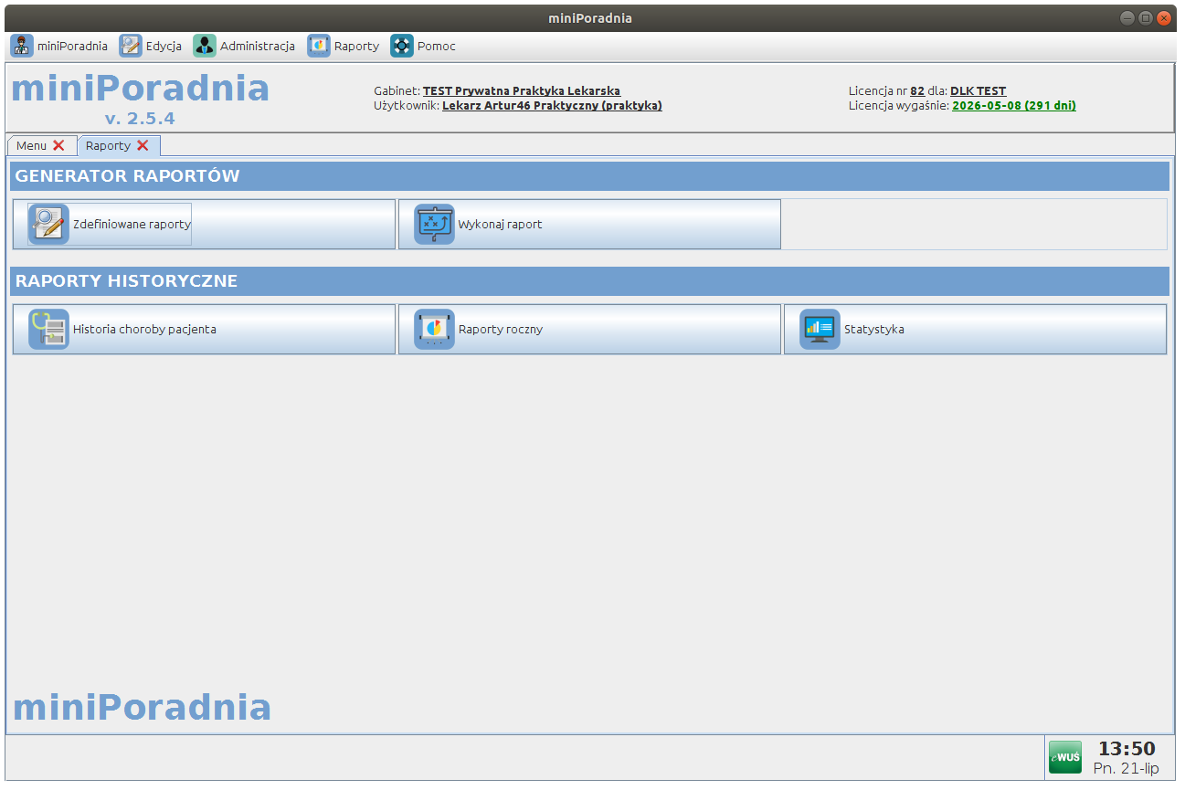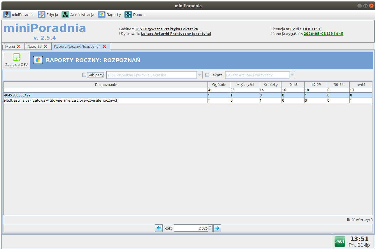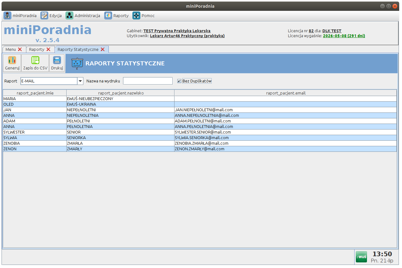 Raporty statystyczne (wydajność gabinetu, liczba wizyt, najczęstsze rozpoznania)
