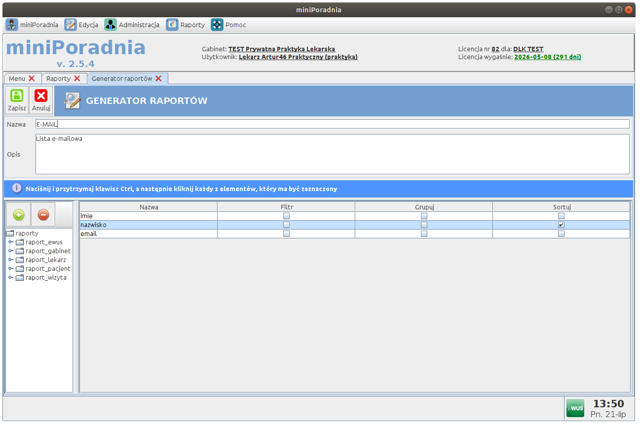 Tworzenie własnych raportów (dowolne filtry i zakresy dat)