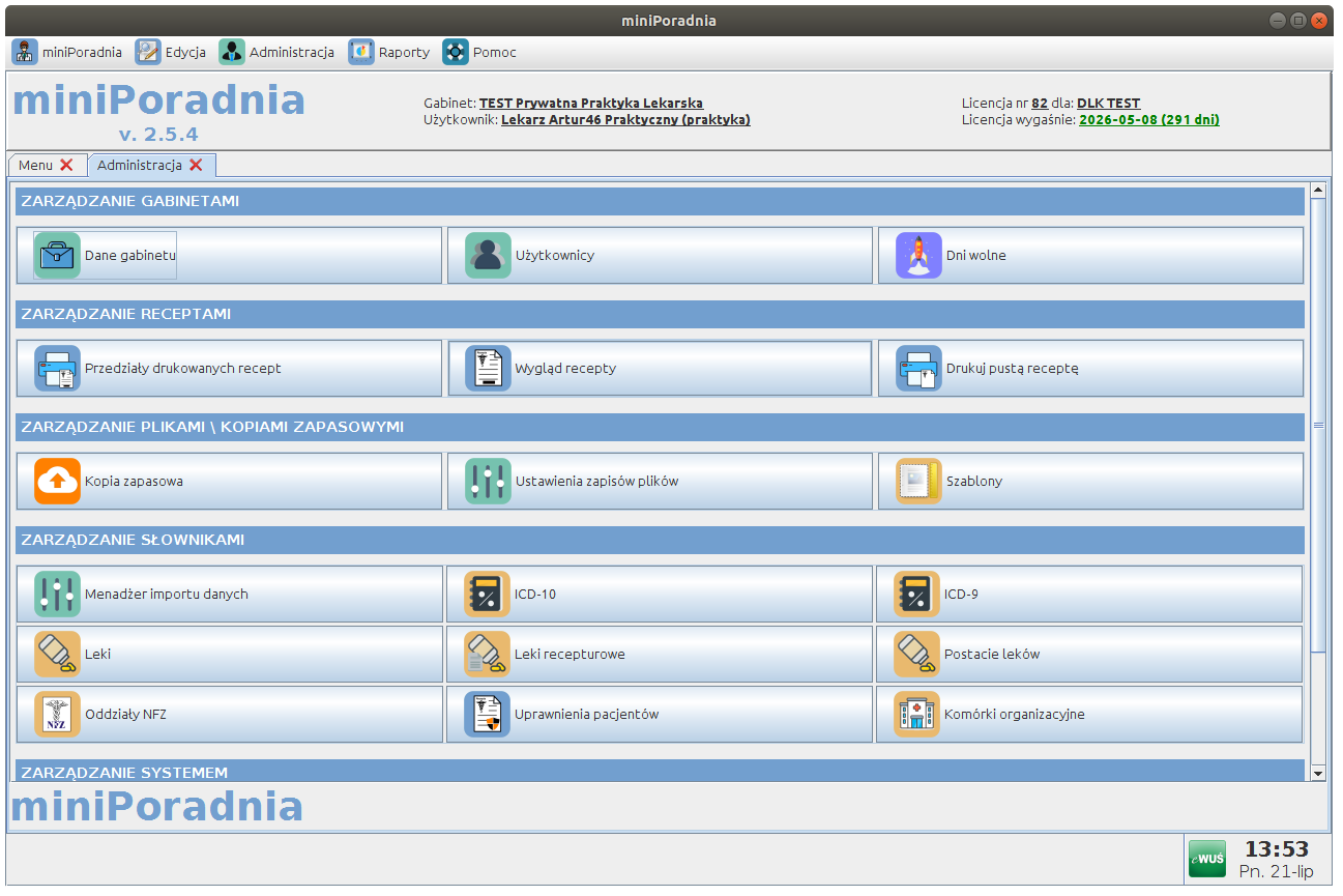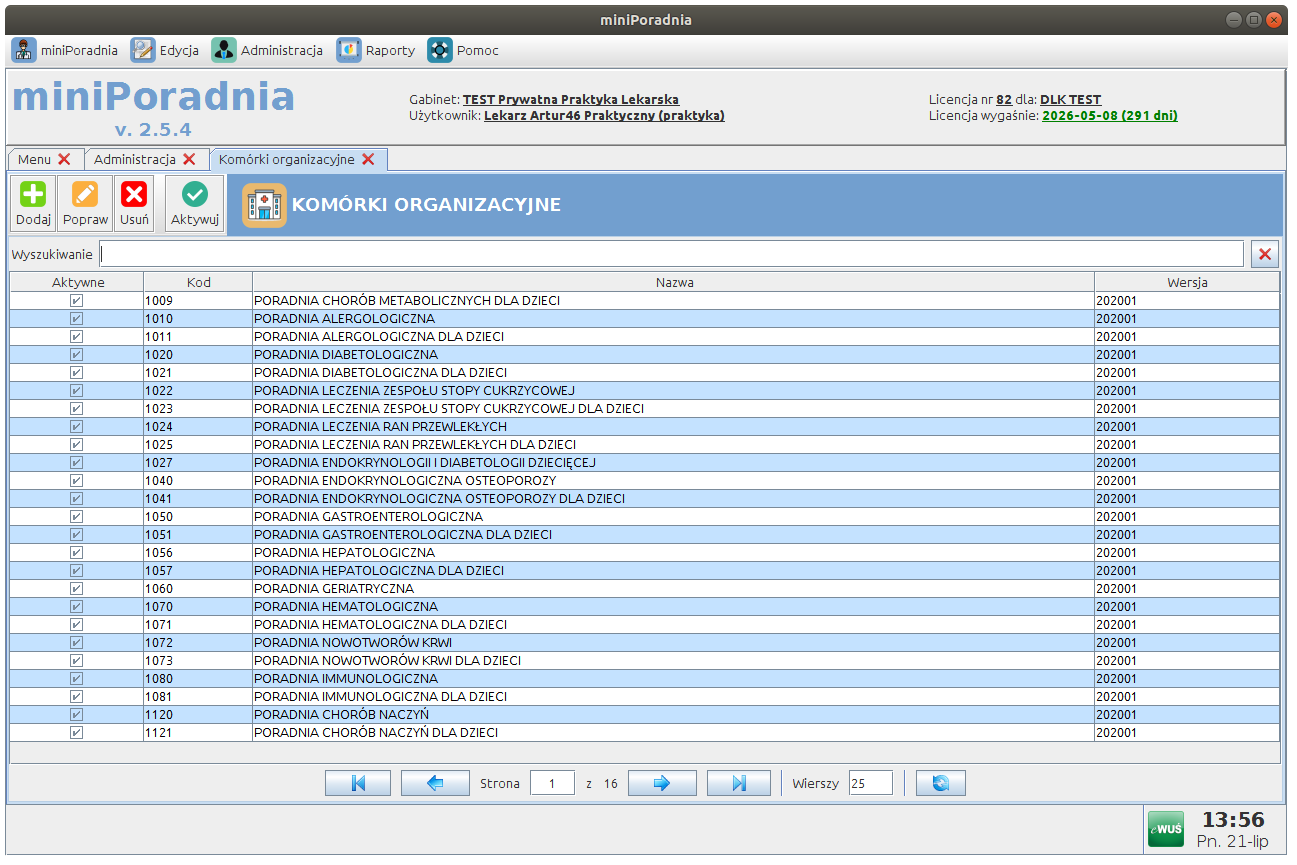 Zarządzanie gabinetami i kontami użytkowników