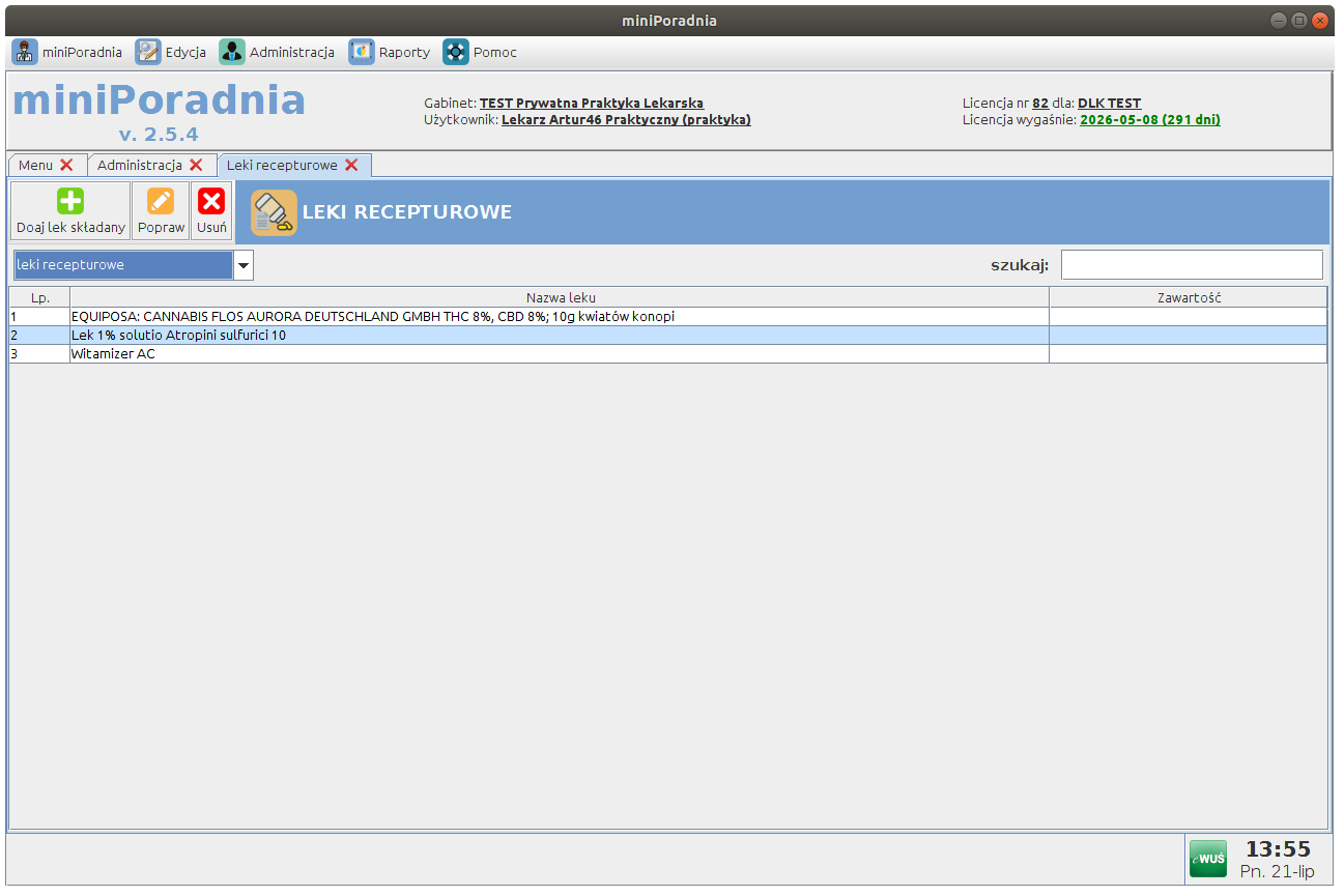 Możliwość definiowania własnych leków oraz leków recepturowych
