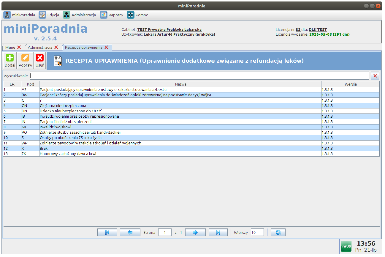 Kategorie uprawnień pacjenta